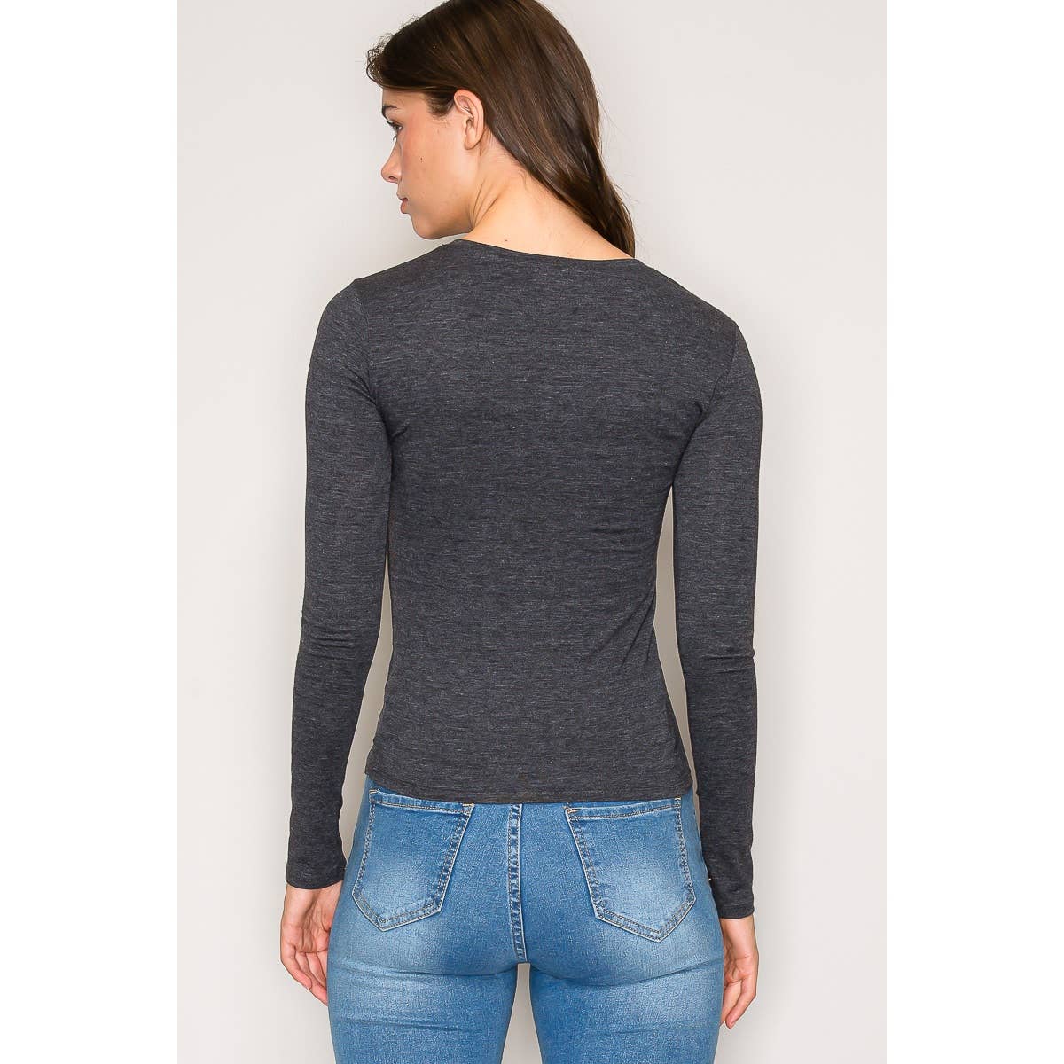Popular 21 - Crew Neck Long Sleeve Cotton Span Knit Tee: Charcoal / S-M-L(2-2-2)